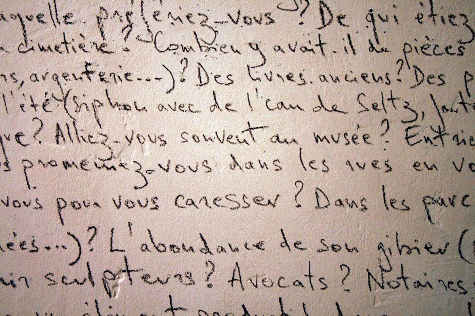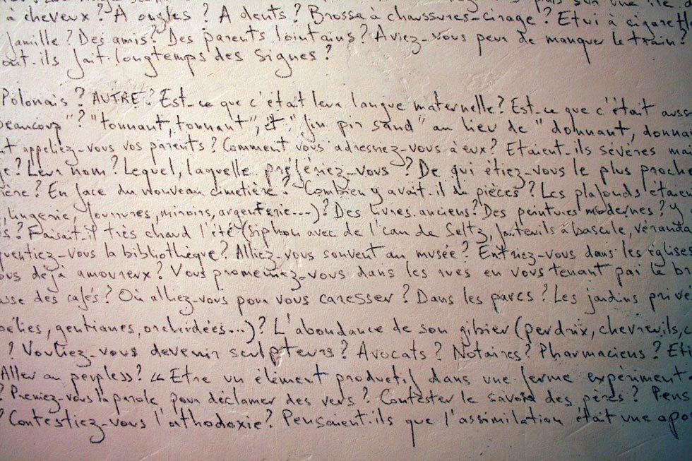 Invitée à participer à l’exposition Continuum avec le sculpteur Markus Strieder pendant l’été 2013, j’ai choisi de retranscrire l’intégralité des questions de mon livre Nécessaire et urgent sur le mur d’un étroit couloir de La Halle de Pont-en-Royans, un lieu d’art contemporain dont la configuration troglodytique résonne avec la sombre histoire du maquis du Vercors. Le 7 septembre 2013, la lecture de Nécessaire et urgent sur des images d’Arno Gisinger fut suivie d’une table-ronde avec les historiennes Annette Wieviorka et Sylvie Lindeperg. En collaboration avec le Réseau Mémorha.