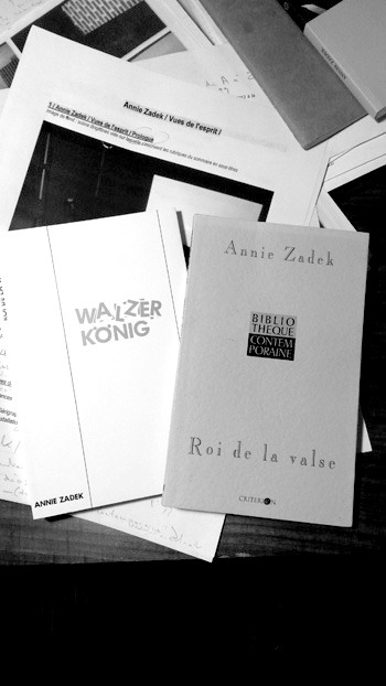 Comme si, à chaque parution d’un livre d’Annie Zadek, il était établi que le texte du livre devait simultanément s’approprier aussi l’espace de la scène et celui des ondes après celui de l’édition.